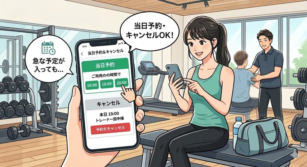 通常のパーソナルジムではNGとされている当日キャンセル、予約が可能。