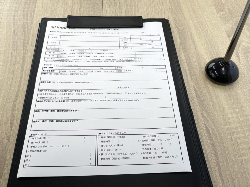 始める前にトレーニングでケガをしたことがあることを伝えると、軽めの重量でいきましょうと対応してくれました。