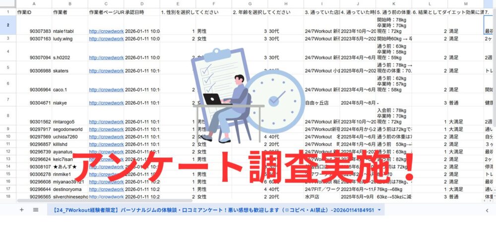 当サイトでは「クラウドワークス」にて24/7Workoutの利用者体験談のアンケートをとりました。